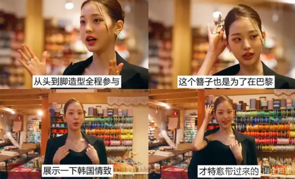 一個視頻中,她戴着中式鳳凰髮簪,説這是韓國風情。
