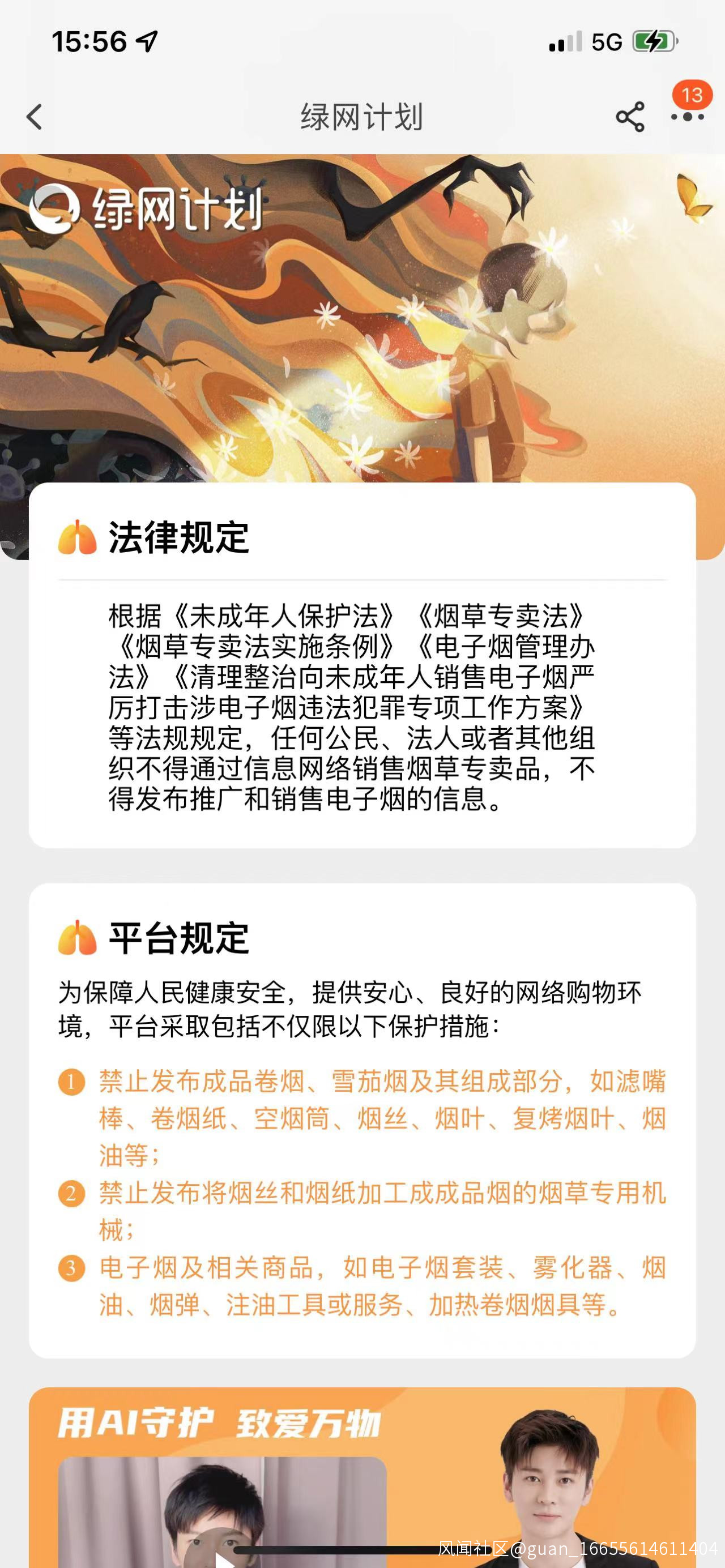 根據2019年11月,國家煙草專賣局、國家市場監督管理總局發佈的《關於進一步保護未成年人免受電子煙侵害的通告》,電商平台不得在線上銷售電子煙,也不得發佈電子煙相關廣告。
