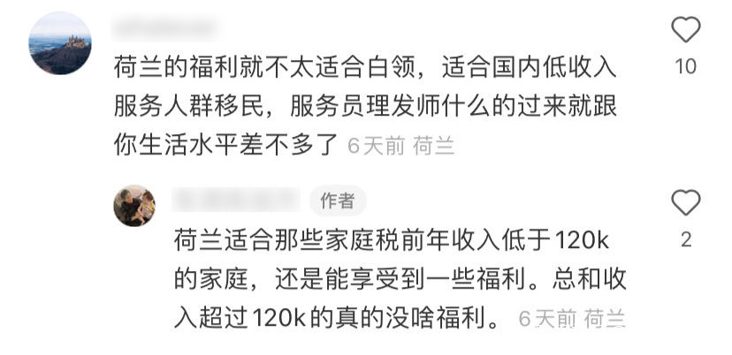 那些網上一天到晚吹噓荷蘭福利好的咱也不知道説啥,反正除了70塊錢一個月的育兒金咱啥福利都見過。基本上家庭税前年收入超過120k的,就沒有什麼福利了。