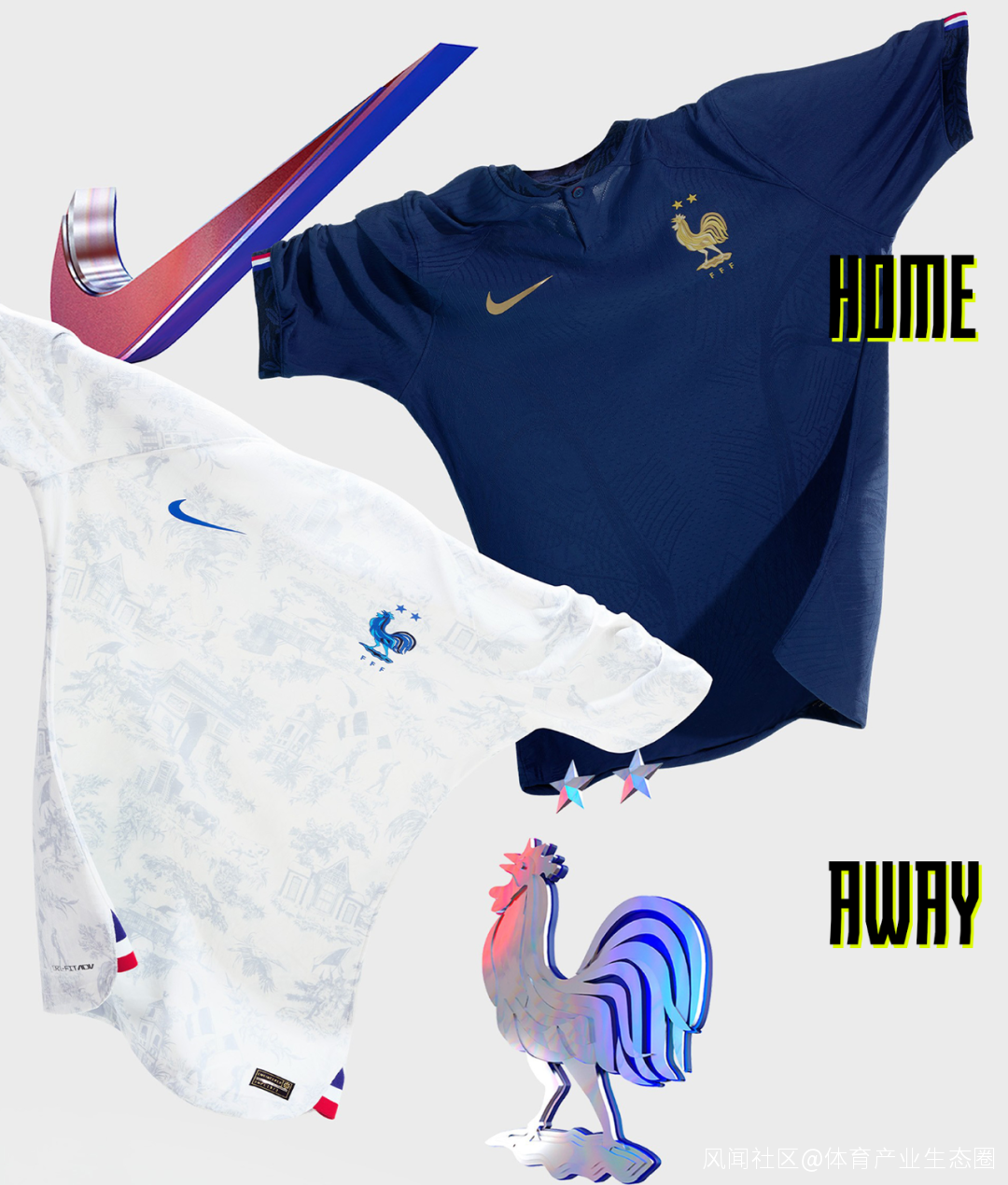 法國的主場球衣依舊是普普通通經典藍,客場的球衣圖案則採用了法國經典的Toile de Jouy印花,上面印有人物、草木、凱旋門等地標建築。好一個「清明上河圖」球衣。