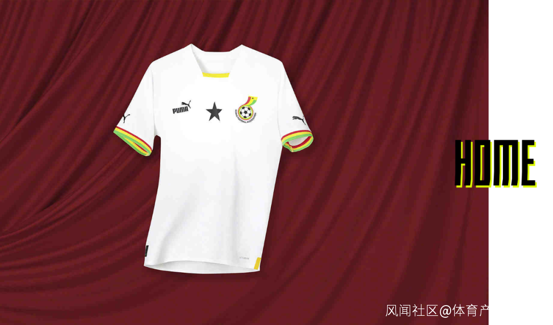加納主場球衣胸前正中心,為象徵加納的「黑色之星」,袖口的顏色則來自加納國旗。除此之外……有點設計,但約等於零。相比之下,還是客場球衣的整體設計更具西非風情。