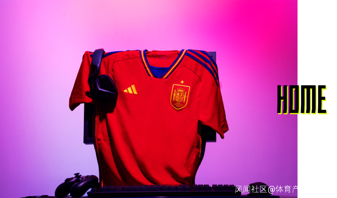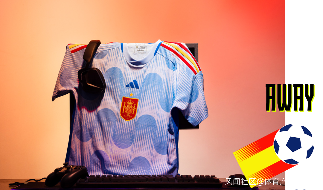 西班牙主場球衣還是經典正紅,領口顏色取自西班牙國旗。客場球衣的靈感來自於1982年西班牙世界盃的會徽——一個在空中飛翔的足球。彷彿是很多足球在球衣上肆意彈跳,配合肩部的彩色線條更顯靈動。