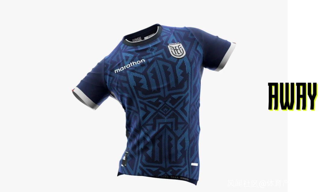marathon為厄瓜多爾設計的主客場球衣分別以黃色和藍色為主色調。客場球衣的圖案為代表厄瓜多爾的四大區域。不得不誇下配色,可比前幾年高級太多。