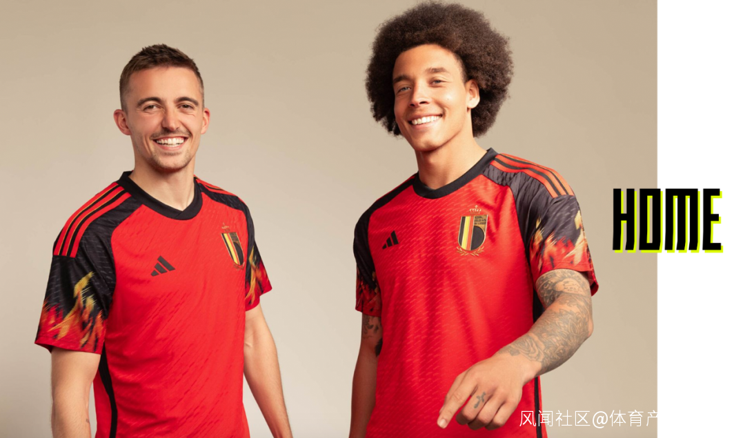 比利時主場球衣的最大亮點便是袖口上的火焰,由色彩線條組成的火焰圖案很有衝擊力,不顯廉價。客場採用了主體白色的設計,色彩豐富,節奏明快。