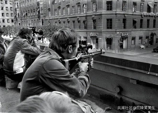 1.新聞攝影師和警察狙擊手並排站在斯德哥爾摩 Norrmalmstorg 廣場 Kreditbanken 銀行對面的屋頂上。一場失敗的搶劫變成了為期六天的對峙,從而產生了“斯德哥爾摩綜合徵”一詞(瑞典斯德哥爾摩,1973 年) 。