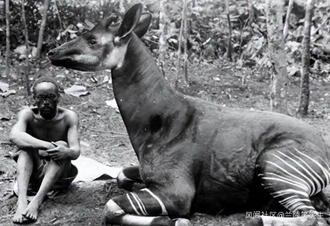 4.剛果河流域某處,剛果人與霍加狓。時間大約 是1910 年。