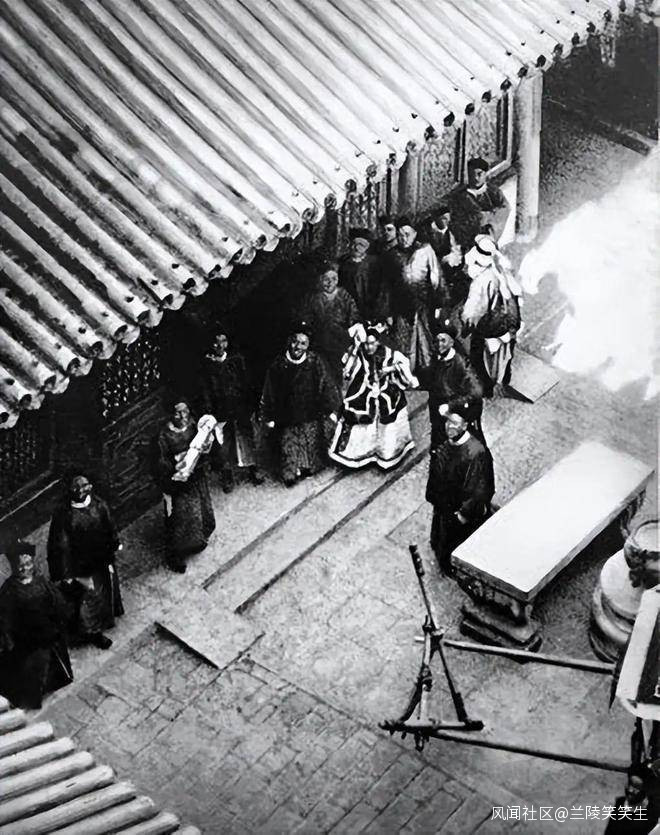 15.1902年慈禧太后,被太監包圍,用手帕向鏡頭揮手。