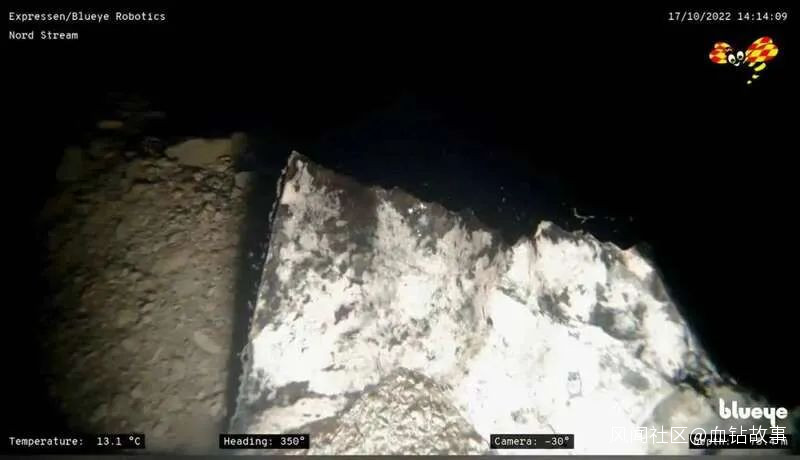 當地時間10月18日,在波羅的海海面以下80米處,《瑞典快報》拍攝到了“北溪-1”天然氣管道爆炸位置的畫面。