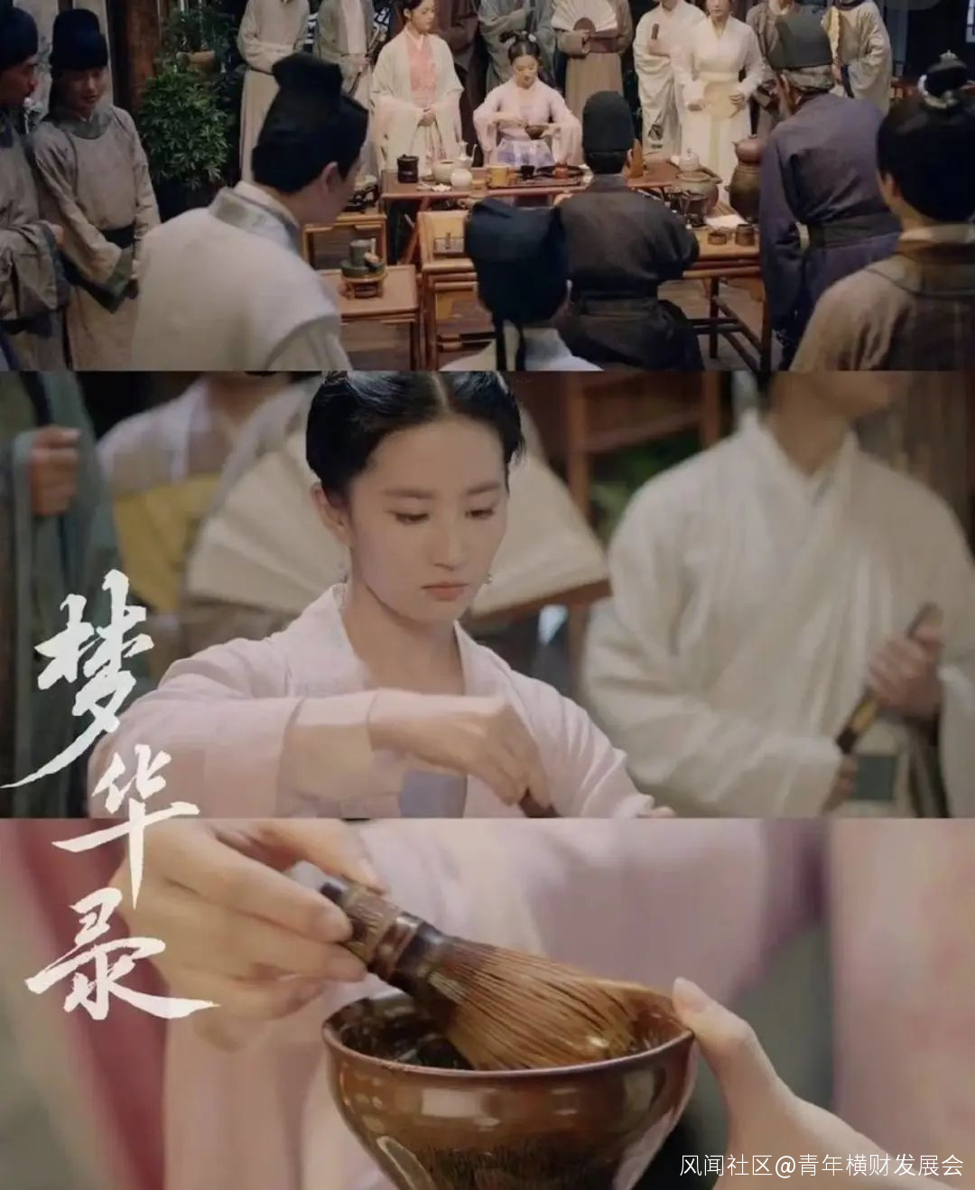 但是劇情的抓馬有極限,當紅的流量也可能轉身就進了局子,所以卷文化是不會出錯的一招。《知否知否》和《夢華錄》這樣的大熱爆款劇點燃了大家對宋代點茶的好奇。