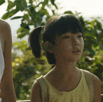 傅鉑涵飾演的少年小江(小花捲裹着捲髮,表情怪異,塑造了一個很好的“熊孩子”形象。