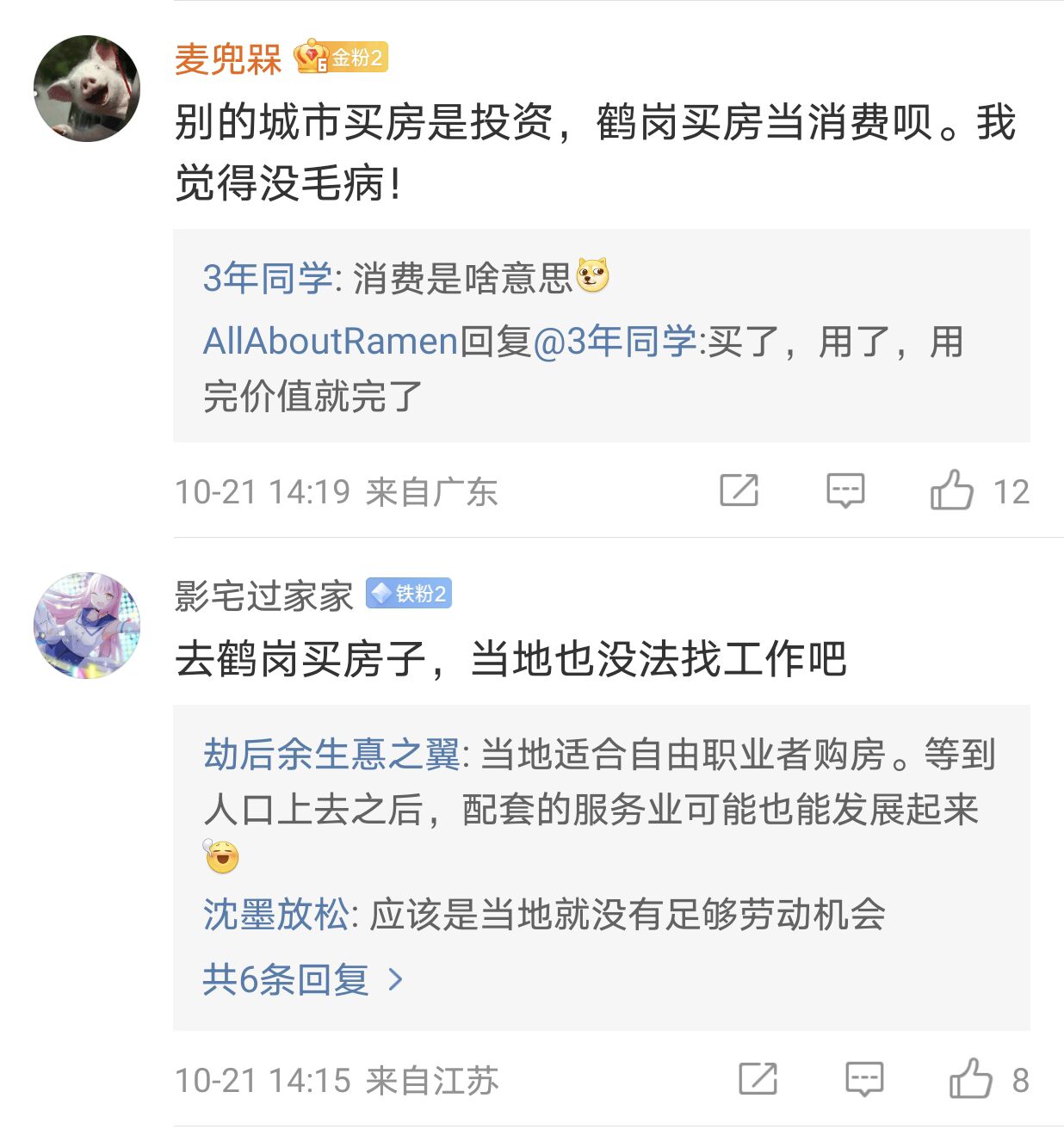 還有的人認為,帶鶴崗買房其實跟普通消費買東西沒啥區別,別想着和其他地方一樣買房當投資就行了。