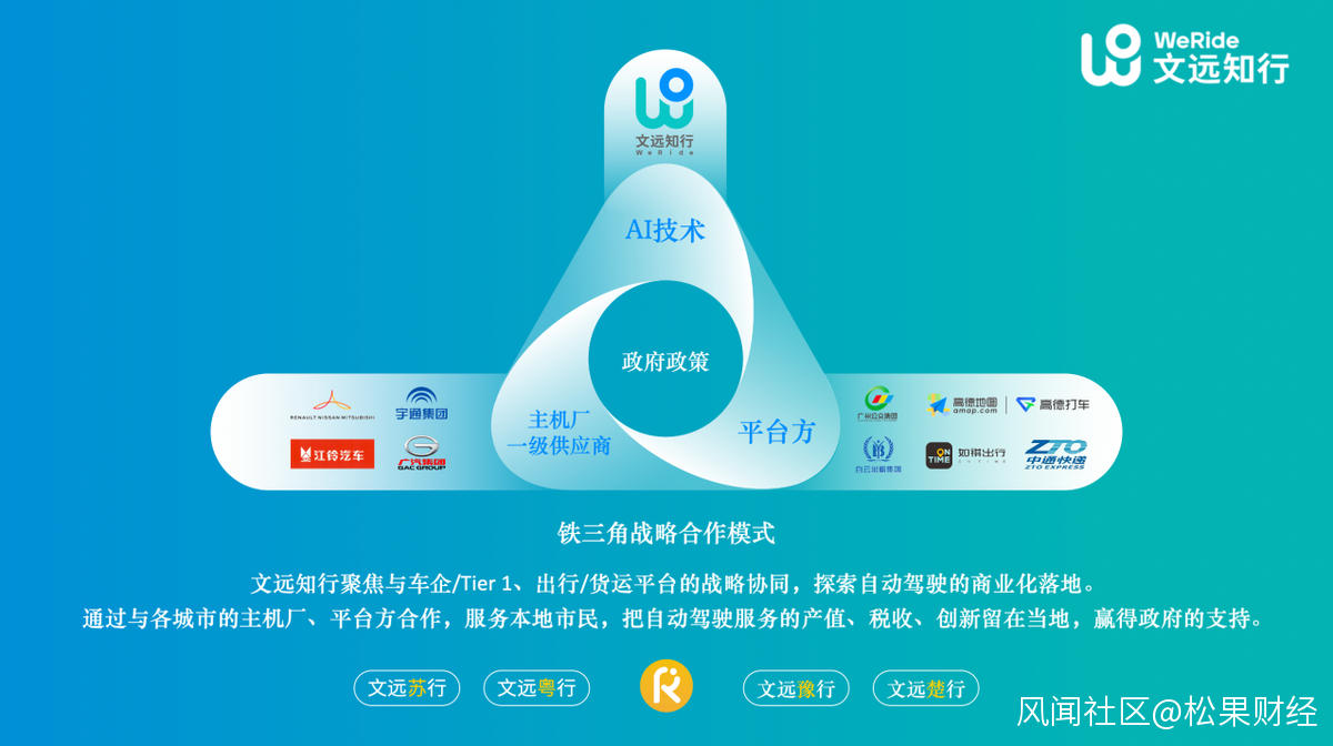這道出了自動駕駛開發者們的典型現狀:當技術融於現實,企業的一部分注意力將從對技術長處的挖掘,轉移到快速佔領市場、創造應用價值上。自動駕駛企業、主機廠、平台方的關係,也從未如此緊密。今年5月,文遠知行獲得博世戰略投資,並聯手開展智能駕駛開發。此外,文遠知行最早提出的“鐵三角”模式,也是自動駕駛領域目前被普遍應用的模式。