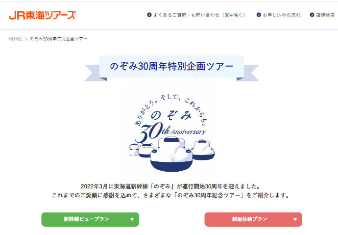 2022年3月是日本東海道新幹線"希望"號(可以類比為京滬高鐵上最快的幾趟車次)開通30週年紀念。由此JR東海推出了各種活動和商品,官方的活動有: