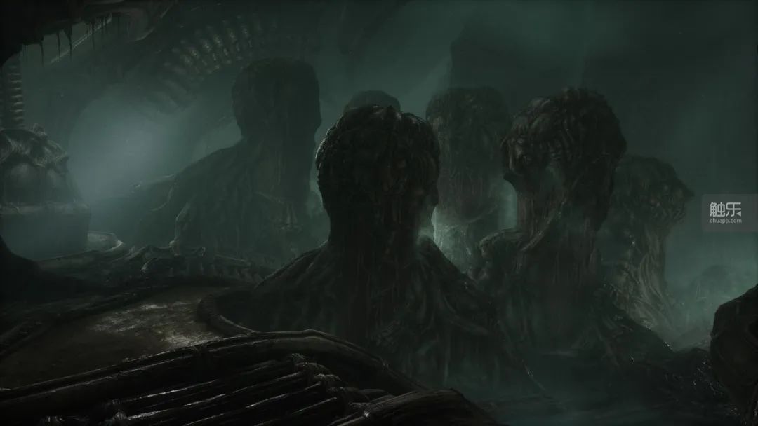 既然“異形”已經不算新鮮,《蔑視》還能成為玩家強烈渴望的遊戲,原因在於,它塑造了一個比“異形”系列遊戲更加“異形”的氛圍。無論是陰森的氣氛,還是對孤獨的恐懼,《蔑視》在前期宣傳中就展現出了極精細的美術工程,這讓玩家不禁遐想——這款遊戲不僅繼承了“異形”的外型,比如生物科技、骨骼建築、光滑粘稠的外星怪物,還非常有可能繼承了吉格爾的美術靈魂——關於信仰、關於生存、關於死亡。