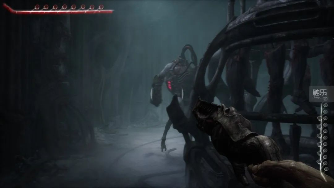 總之,遊戲有意地引導玩家探索周遭的環境,從零開始理解這套詭異的生物科技邏輯,而整個過程中,我好像在適應另一種生物的思維,它讓我感覺自己真正地置身在扭曲的環境,和主角一起在呼吸腥氣逼人的空氣。