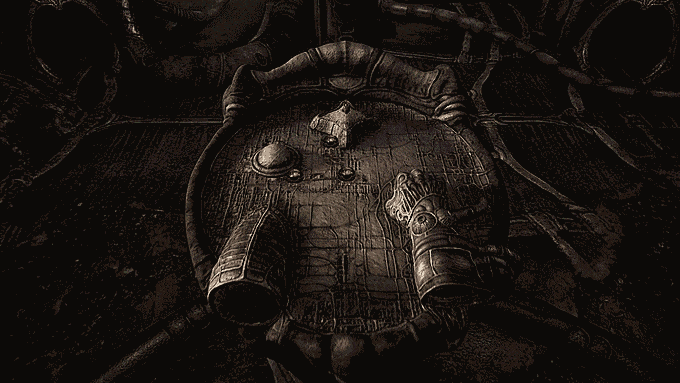 隨着地面的崩塌,你和零碎的石塊一起掉進了深淵。你從谷底醒來,隱藏在濃厚的浮塵後的是骨骼搭建的建築羣。象牙色的骨壁,扭曲而又圓潤的曲線,還有用肉塊連結的立體裝置……厚重的骨門緊閉,你把左手伸進蠕動的空腔裏,伴隨着一陣刺痛,手臂上被釘上了一套表面粗糙的褐色裝置。它像是一隻狡黠的昆蟲,末端有倒刺,扎進肉裏,死死地鈎住,又通過某種方式和神經網絡相連。