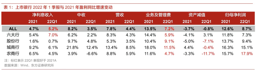 據東方證券統計,一季度,41家上市銀行的整體營業收入(扣除其他業務成本)增速約為4.4%,相比2021年全年降低了3.4%