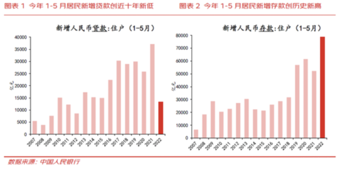 今年1-5月居民新增貸款只有13318億元,是近十年來新低,而存款大幅增加78561億,創歷史新高