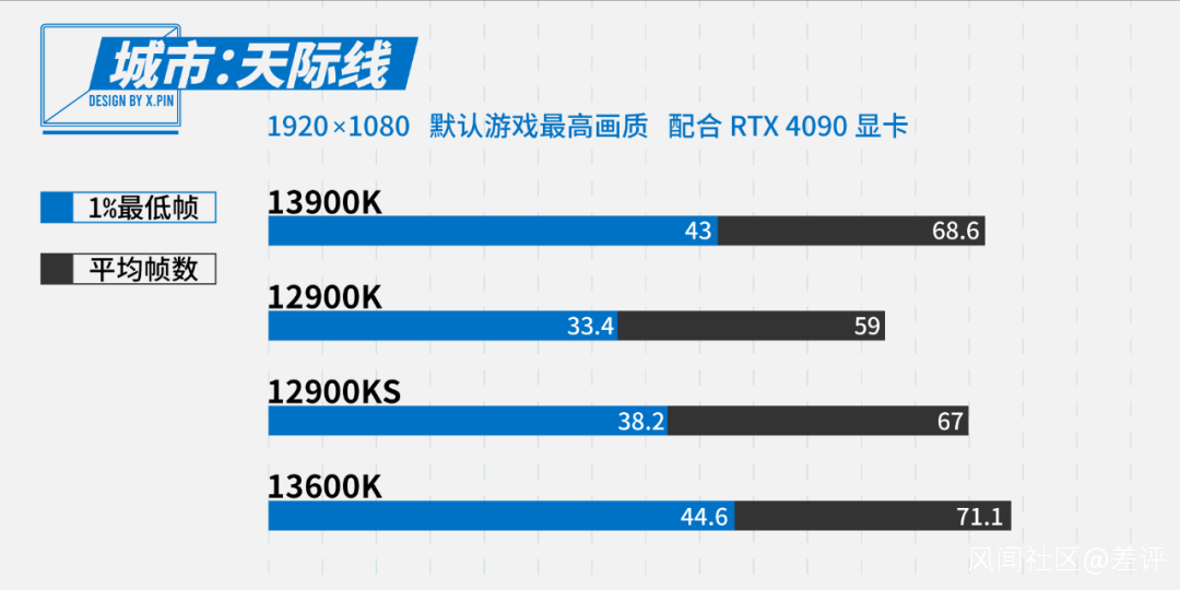 然而這款遊戲的幀數表現還是比較正常的,13600K 在這裏沒有超常發揮,13900K 硬實力第一。