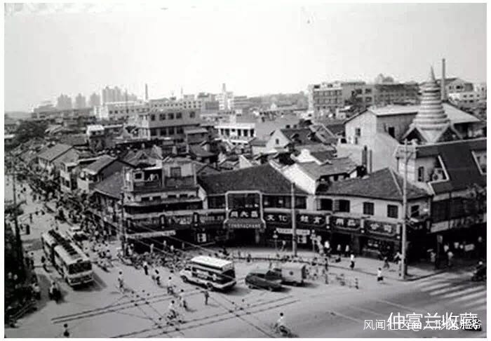 自左向右,分別是寄售商店、新華書店和東風鐘錶商店。圖片攝於1990年代初。