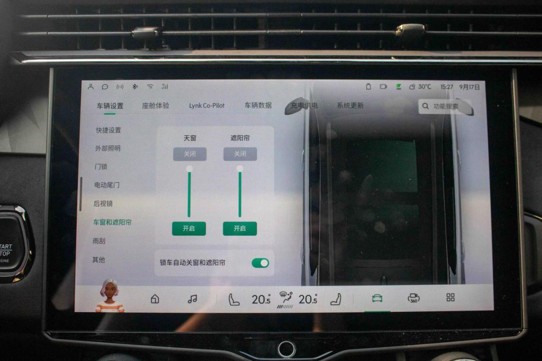 而在 UI 設計上,領克的確是更懂中國消費者的喜好。相比有些樸素「德式風格」的 ID.4,領克 01 EM-P 的 UI 設計明顯更加高級、豐富且有設計感。得益於 8155 芯片的強大算力,領克甚至還為天窗/遮陽簾開關界面和車輛設置界面渲染了細膩的模型,值得表揚。