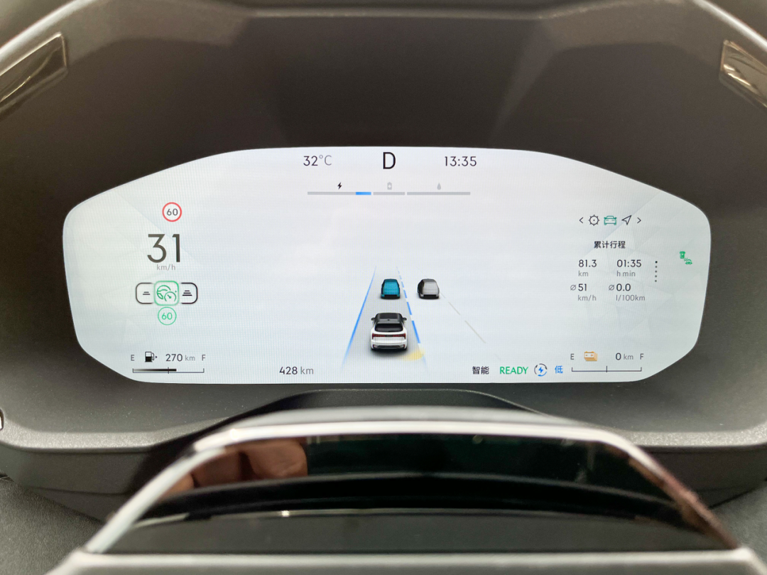 通過儀表盤上的能量流,我發現在行駛過程中領克 01 EM-P 的工作狀態十分積極,但無論是串聯、並聯、混聯,這套系統切換的動作均十分輕柔且不易察覺。