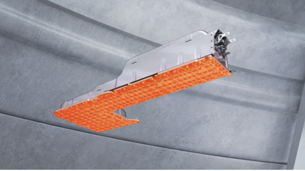 首先我們可以直觀地看到,在領克 01 EM-P 的底盤下方沒有任何凸起,電池包被安置在扶手箱和後排地板的「L」型區域。這塊中置式設計的電池組也是領克原生正向開發的產品。相比較很多純電車型在底盤鋪設凸起的平板電池的做法,這樣的佈局不僅能夠保證車輛在碰撞時前後入侵難以傷及電池,在日常使用中也降低了拖底損傷電池包的風險。