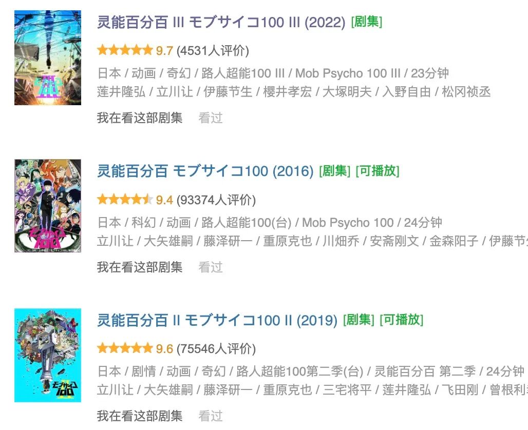 三季均分高達9.6,剛剛開播的第三季飈到9.7,超過八成觀眾打出5星。