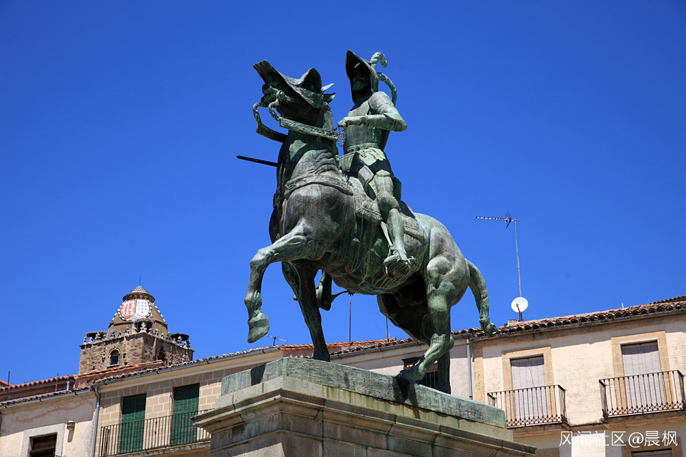 Trujillo在Extremadura都是小地方,但這小地方出了個大人物:Francisco Pizarro。他為西班牙打下了大半個南美洲。Pizarro家族也是Trujillo的大户,小城中心的廣場上豎立着Francisco Pizarro的騎馬像,四周是家族的豪宅,山上還有老宅。