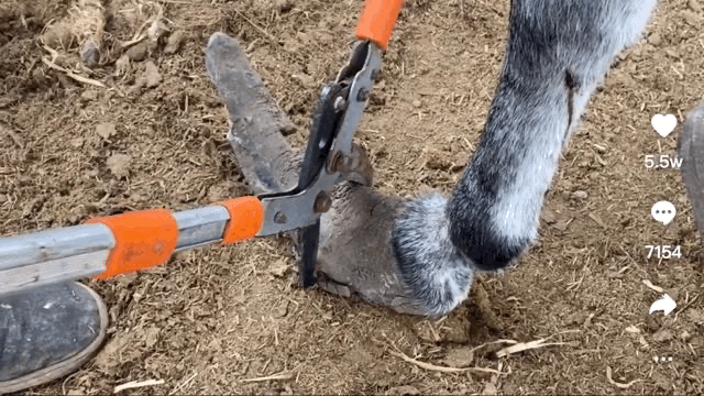 chua chua chua ,先用「大號指甲鉗」乾淨利落地把過長的驢蹄剪掉。