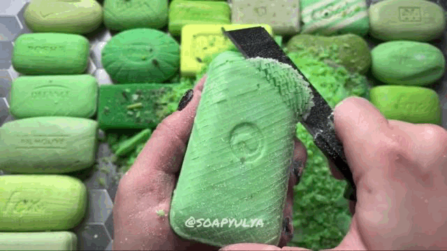 伴隨着一陣窸窸窣窣的聲音,刮刀在光滑的肥皂上從上到下勻速運動,動作平穩而流暢。