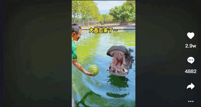 動物園裏的大熊貓在瘋狂炫竹子,河馬在一口一個大西瓜。