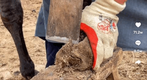 一聲聲清脆的切蹄聲,看着驢從髒兮兮疙疙瘩瘩的蹄子,到驢類高質量蹄子。