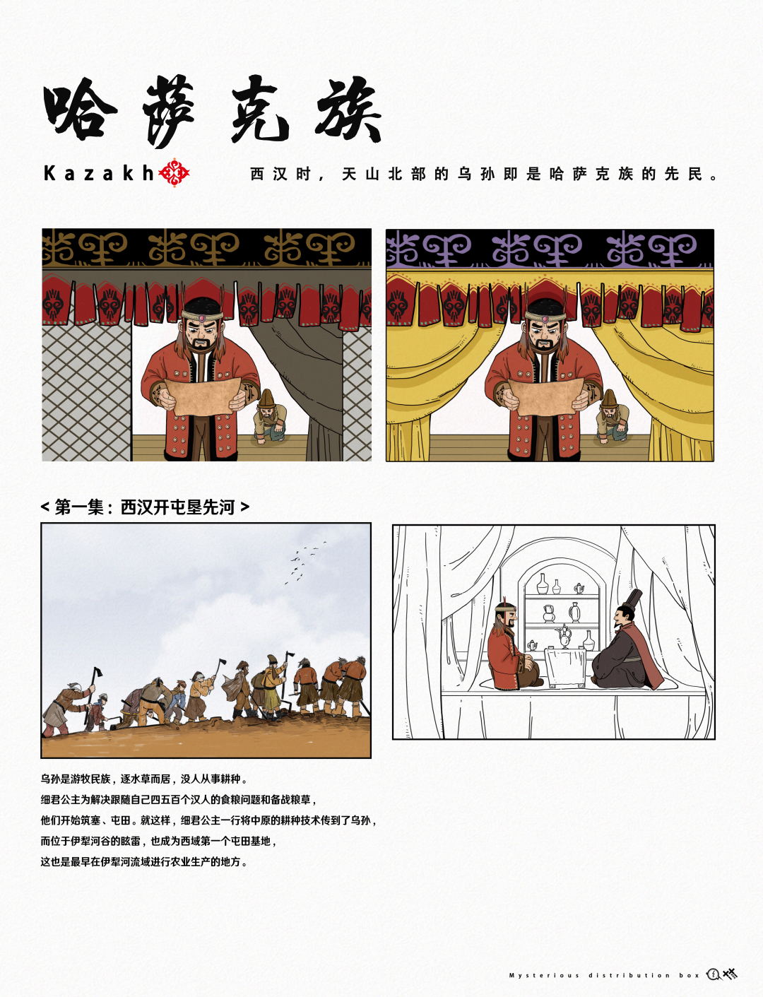 在創作中,他將這些插畫放進了哈薩克族的範疇裏,側面反映二者的相關性。