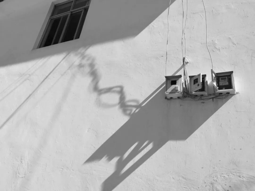 在一個陽光高照的中午,他下樓扔垃圾,一抬頭就看到了他住的房間窗户外面有三個並排的配電箱,在大大的白牆上掛着,電線盤根錯節。