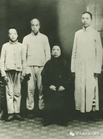 1919年,毛澤東與母親和澤民、澤覃在長沙合影