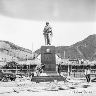 1958年,朝鮮的志願軍烈士陵園“無名英雄”雕塑銅像安裝現場