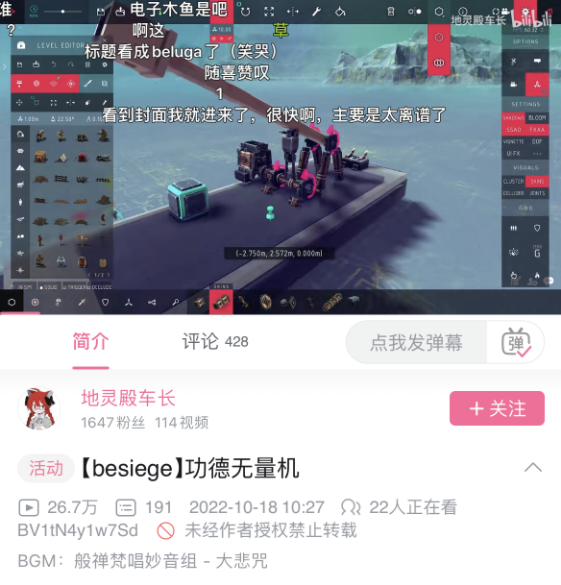 比如B站的某位UP主,就在戰爭遊戲《Besiege》裏,自行研發了裝甲車改造版電子木魚。