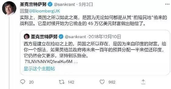 英國GDP總量不如印度、國土面積不如印度、人口只是印度的零頭、武裝力量不如印度、精英人才也不如印度……就連自己國家的元首,都得選個印度人來幹,你説到底誰是誰的殖民地?這就是傳説中的“印屬大不列顛”吧?