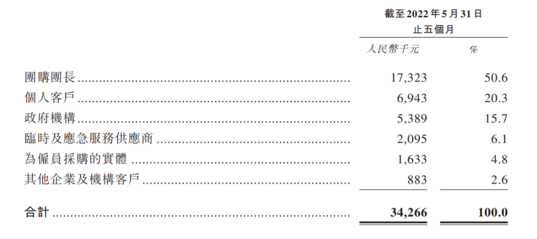 這139名臨時及應急服務客户中,主要是:上海市住宅區團購團長、個人客户、政府機關以及企業及機構實體。從收入構成看,團購團長成為主要的客户來源。前五個月貢獻1732.3萬元,佔該業務板塊營收的50.6%。