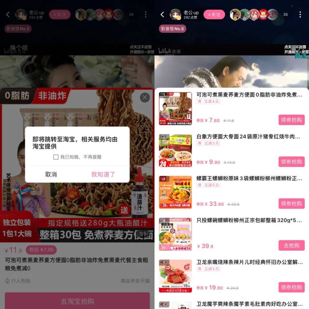 柒財經注意到,B站直播帶貨入口僅限於手機客户端最新版本。除B站自營產品外,消費者購買直播間的商品需要跳轉至淘寶、京東等第三方平台。