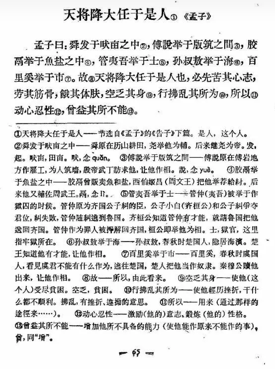 然而,在這位作者翻看了很多資料和書籍之後,發現這句話其實應該是“故天將降大任於是人也。”而並非大家記憶中的“斯人”。