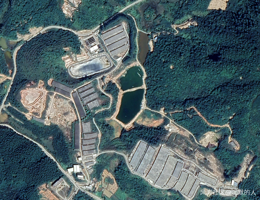 同時,養豬其實很消耗水資源的,所以有些人跑去水庫周邊養豬。説一句,飲用水水源地周圍是不能養殖的。我們鎮最大的養豬廠,也挖了幾個池子儲存水資源,如圖所示。