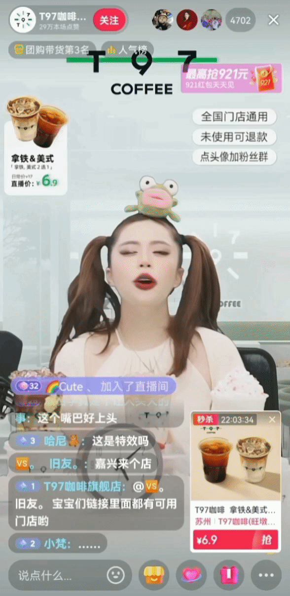 李瀟是有底氣的,T97咖啡直播間內,僅靠一個大嘴女主播喊麥,就搞定了上億看官。