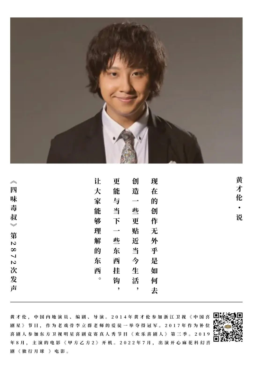 黃才倫:喜劇要做得更好,就得和生活掛鈎