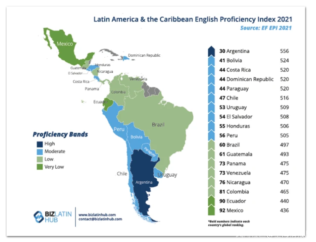 拉美地區:離美國最遠,和英國打過仗的阿根廷人英語最流利,離美國最近,和英國幾乎沒有瓜葛的墨西哥人英語流利度最拉垮。