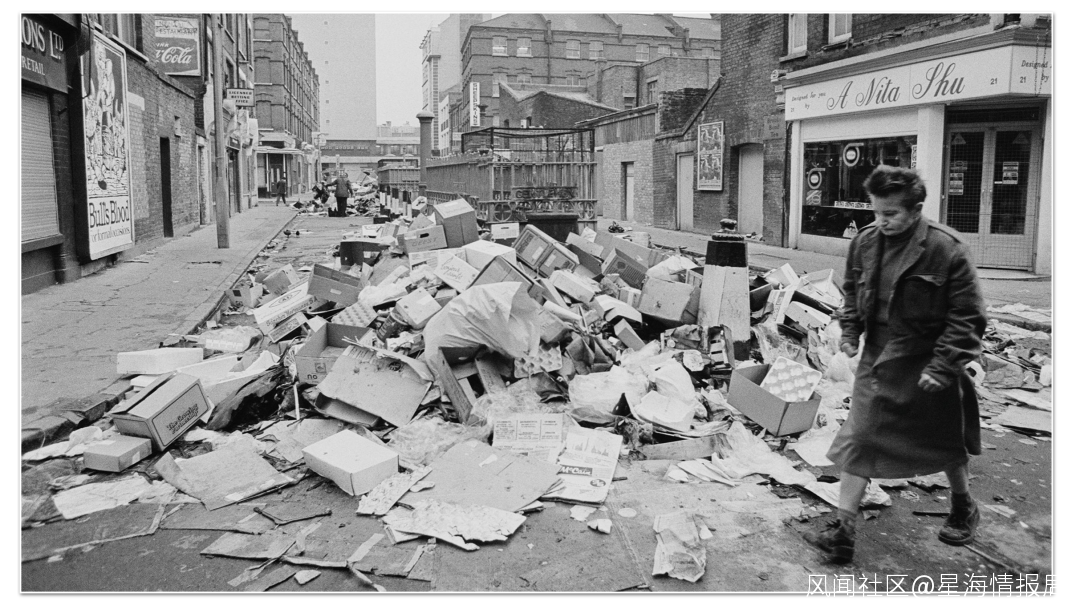1978年,外有石油危機,內有北愛共和軍作亂,英國的各行各業幾乎都陷在無休止動盪和鬥爭之中——罷工、停電、商店貨架空空如也,加油站前排起長龍,滿街垃圾無人清掃——這些要素充斥了英國老百姓的生活。維多利亞時代的“日不落帝國”,打贏了二戰的英聯邦,在1978年那個“不滿的冬天”裏已經站在了崩潰邊緣。