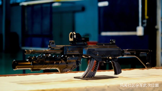 STV-416就有點奇怪了,不知道是不是為了叫板HK416而起了這麼個名字,但整體結構卻又迴歸了AK103,而且整槍並不像STV-410那樣佈滿了皮軌,而是取消了所有皮軌,只在護木下方留一個用於下掛式榴彈發射器的支架。