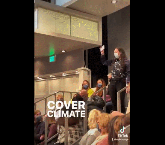 其中一名抗議者直接大罵克魯茲“去你X的,你這個否認氣候變化的混蛋”,導致節目不得不緊急消音轉播放廣告。