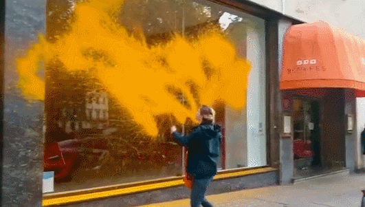 為了吸引關注,他們常常在各地的政府部門和商店潑漆。就在前兩天,還有2名抗議者在倫敦多個知名豪車展廳外噴塗橙色油漆。